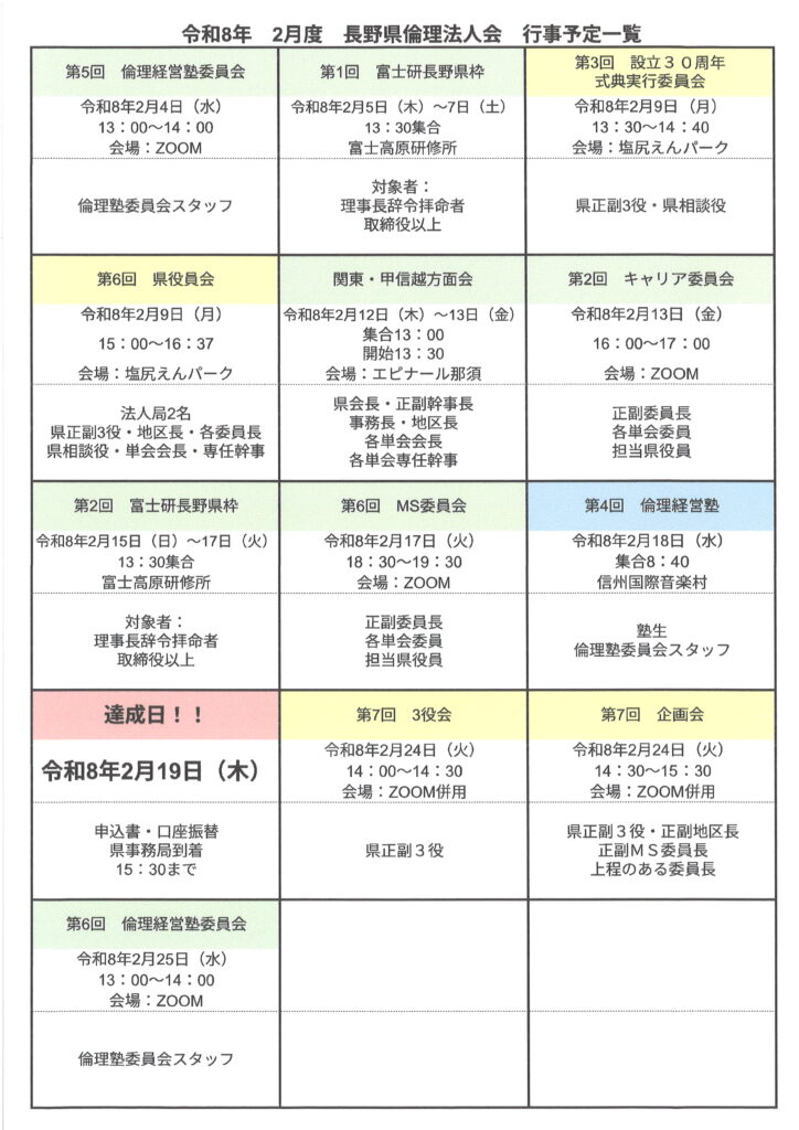 長野県倫理法人会2月度スケジュール