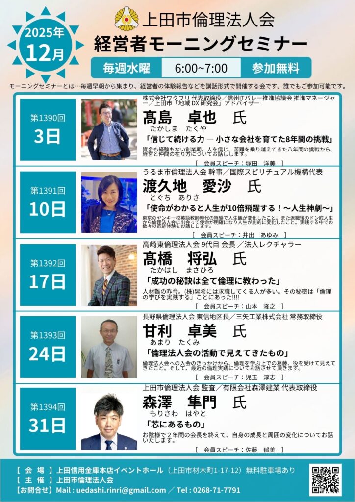 (上田市)第1394回 経営者モーニングセミナー 芯にあるもの