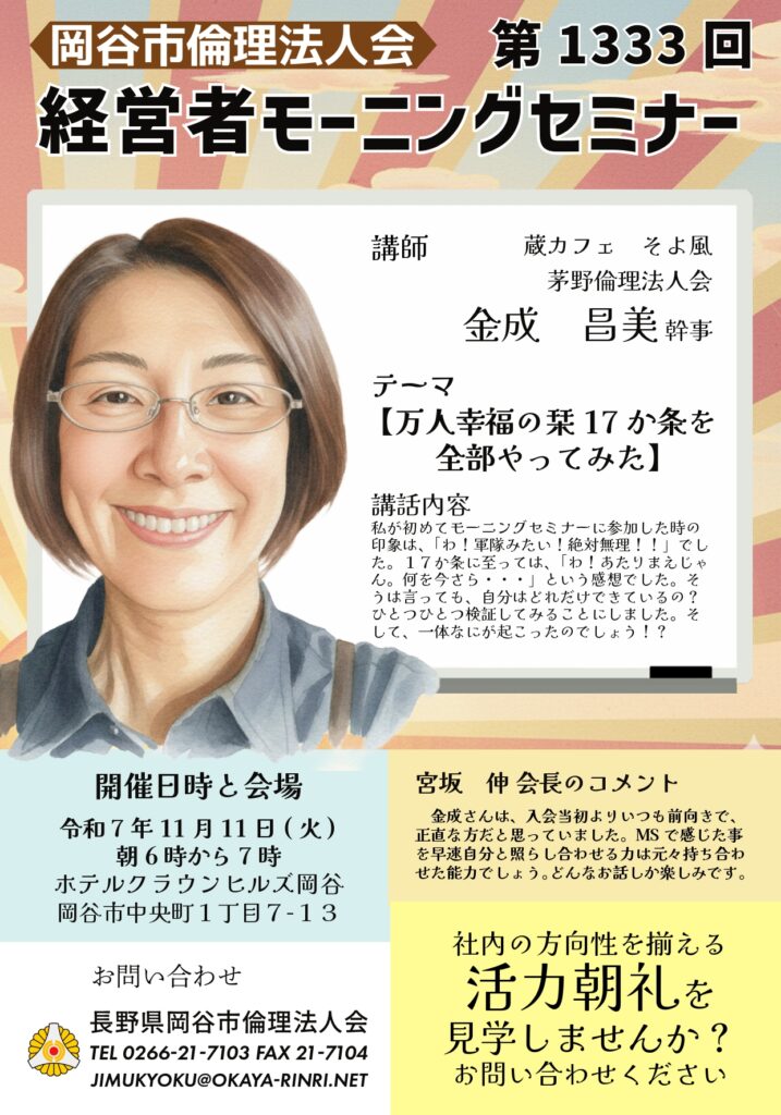 諏訪地区岡谷市倫理法人会 モーニングセミナー