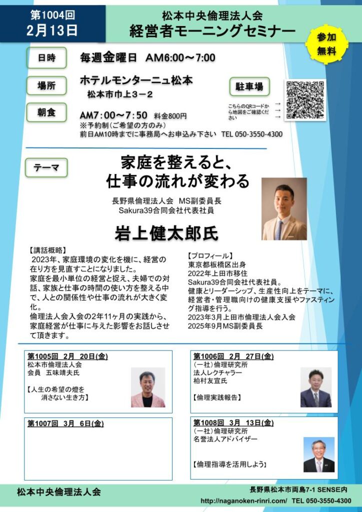 (松本中央)モーニングセミナー「家庭を整えると、仕事の流れが変わる」