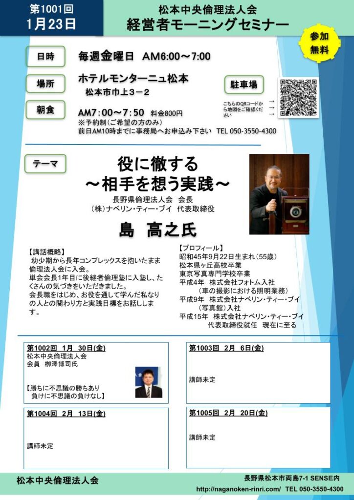 (松本中央)モーニングセミナー「役に徹する~相手を想う実践~」