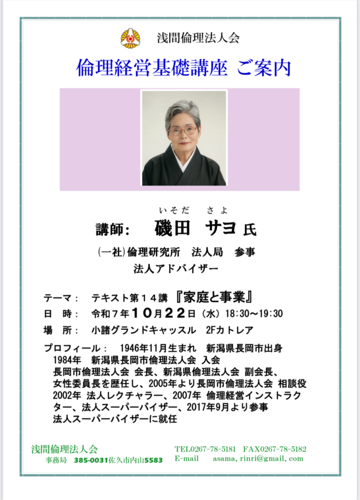 (浅間)倫理経営基礎講座 テキスト第14講 『家庭と事業』